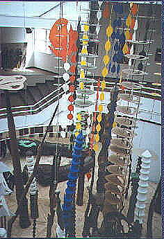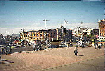 Wo wir doch gerade an der Plaza d'España sind können wir auch noch eine Rundreise über das Olympiagelände unternehmen. Hierzu besteigen wir den Besichtigungszug (ein Trecker mit 2 Anhängern) der direkt an der Plaza auf uns wartet (500 Peseten für die Rundreise) Die Reise führt uns zum Eingang des Palacio Alfons II. Und weiter an den Sportstätten der Olympiade 1992 vorbei zum Montjuich. Hier steht eine Zitadelle in der das Armeemuseum untergebracht ist. Interessant ist der Rittersaal mit Rüstungen hierin starb Graf Soundso mit einem Morgenstern im Brustpanzer und Ähnliches. Aber natürlich auch Schlachtenordnungen und Darstellungen aus dem spanischen Bürgerkrieg. Sollte der Treckerfahrer zu schnell fahren (ihre Sitze sind nicht gepolstert, seiner schon) rufen Sie laut nach der Polizei. Er vergißt dann sein Vorbild (Michael Schuhmacher). |