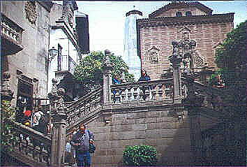 Das Pueblo wurde zur Weltausstellung 1922 in Barcelona erbaut und gibt einen Überblick über Bauten, Bauarten, Handwerk und Kunsthandwerk der verschiedenen Regionen Spaniens von La Vasca - Baskenland im Nordosten bis Andalusien im Südwesten. Im Pueblo gibt es ausgibiege Gastronomie der verschieden Regionen, so daß es sogar lohnt ein Jahresticket für 2350 Peseten zu kaufen (Natürlich vorausgesetzt, daß man in Barcelona wohnt. |