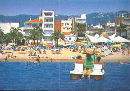 Calella (gesprochen kalelja) liegt an der Costa Maresma. (Bei Blanes hört die Costa Brava auf) Calella de la Costa im Sommer ist ein echter Touristenort. Das bedeutet im Reiseprospekt-Deutsch ein Ort für junge Leute. Was Sie erwarten können: 1. Ein breiter Strand, der selbst in der Hauptsaison nicht überlaufen ist. 2. Ein Ausflugspro-gramm, das sämtliche Ausflüge zu den Sehenswürdigkeiten von Rosas bis Montserrat beinhaltet. 3. Ein Nachleben für jede Altersklasse. 4. Ein Shoppingparadies von der Touristenware bis zu hochwertiger (natürlich auch teuerer) Mode.5. Eine Gastronomie, die sämtlich Küchen von der katalanischer über die britische und amerikanische (wer auch immer so etwas als Küche bezeichnet) bis zur französischen und deutschen Küche.(Fragen Sie ihren Hotelier - vielleicht brauchen sie ein Auto). Zum Thema Nachtleben: Diskotheken für jüngere Leute wie Turisme 35, Highwayman und noch ein halbes Dutzend. Tanzlokale wie das La Quadra, das la Tormenta (mit Show), das Craizy Daysi sind mehr etwas für die reifere Jugend. |