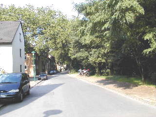 fahren wir nach rechts bis zur Ampel an der Autobahnauffahrt. Nach längerer Wartezeit (wir sind mit dem Rad und nicht mit dem Auto) überqueren wir die B 8 und Fahren in die Theodor Heuss Str. die wir allerdings schon nach 50 m nach rechts in die Büsche verlassen. Auf diesem Waldweg bleiben wir bis zum Ende und fahren dort nach rechts bis zum Wendehammer am Ende der Hagenshofsiedlung. . |