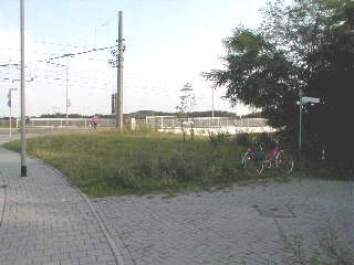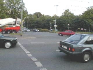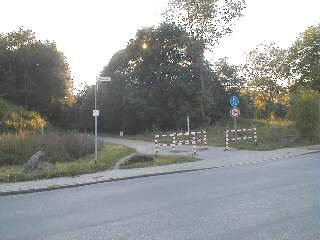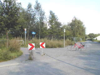 Wir kommen wieder zur B 8. Diese Geschichte mit Straße - Schiene - Zaun sieht von dieser Seite auch nicht besser aus. Auf jeden Fall fahren wir auf dem Radweg nach links (gezwungenermaßen auf der falschen Straßenseite - verkehrswidrig - weil auf beiden Seiten ein Radweg ist -- aber was soll es) Also über die Ampel an der Autobahnauffahrt (Wie sind sie auf die andere Seite gekommen? 1. mögliche Antwort: Ich bin hier geboren. 2. mögliche Antwort: Sehen nicht meinen langen weißen Bart.) Wir fahren nach links und nach 50 m rechts und sofort wieder links. |